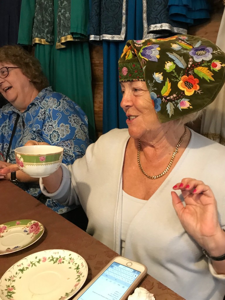 On our second day in Kazan, we saw how they made chak chak, a dessert made of flour and eggs, cut into small pieces, deep fried, and then coated with honey. They were sort of like rice krispie squares. They make chak chak snacks, and “cakes” which are decorated with various fruits, nuts, and sometimes flowers. You would find the cakes traditionally at weddings. It is recognized as Tatarstan’s national sweet in Russia. We enjoyed them with a cup of tea at the Chak Chak Musem where we got to try on traditional clothing and jewellery. I was right at home in Russia, as it seems to me, more people drink tea than coffee.