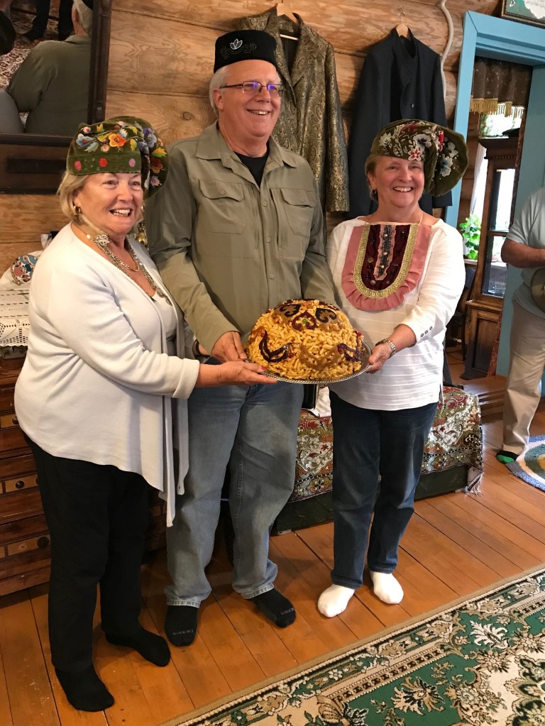 Tatarstan is the only “stan” with its own president. It is an area rich in natural resources, mainly gas, but also hydro power and lumber. It has a beautiful white Kremlin, and within its walls you can find churches along side Kazan’s ancient mosques, including the huge beautiful Kul Sharif Mosque. The homes in this area are also unique. Stone on the bottom and wood on top. It was here that we had a two cooking lessons. At the Tatar Gourmet House, we learned how to make “peruska” (that is a phonetic spelling since my Russian is lacking). They are dumplings filled with meat and spices and then baked and typical of this area We had lunch there the first day, and we got to eat the dumplings we had made. Delicious!
