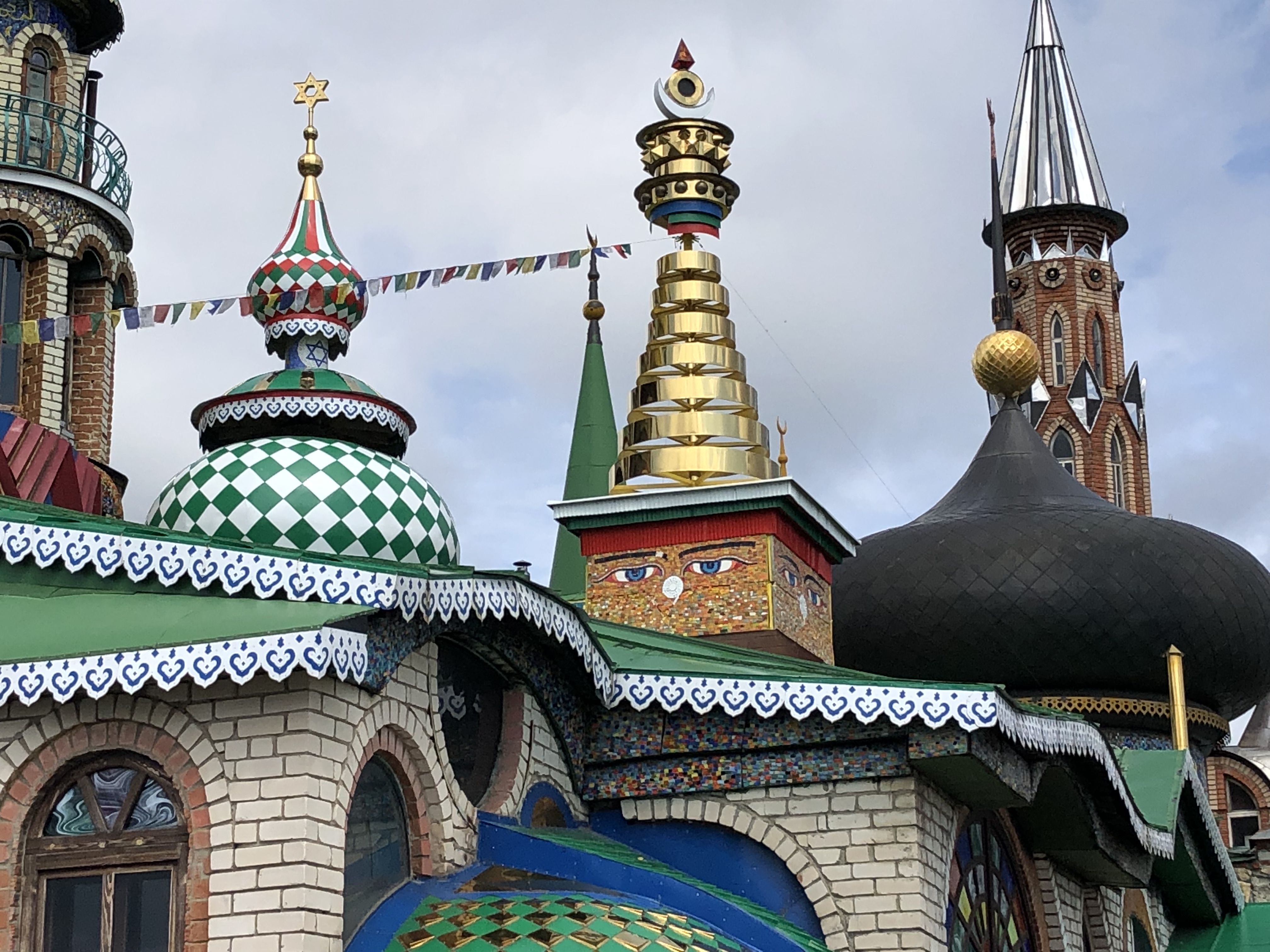 We also visited the Temple of All Religions just outside Kazan. The late Russian artist Ildar Khanov had a dream to unite all the religions of the world after “receiving a message from God.” Khanov started building this temple himself in 1992. It is financed by donations. The site is a colourful jumble of spires, minarets and onion domes. He died in 2013 and his niece is trying to finish the project. Interesting!!