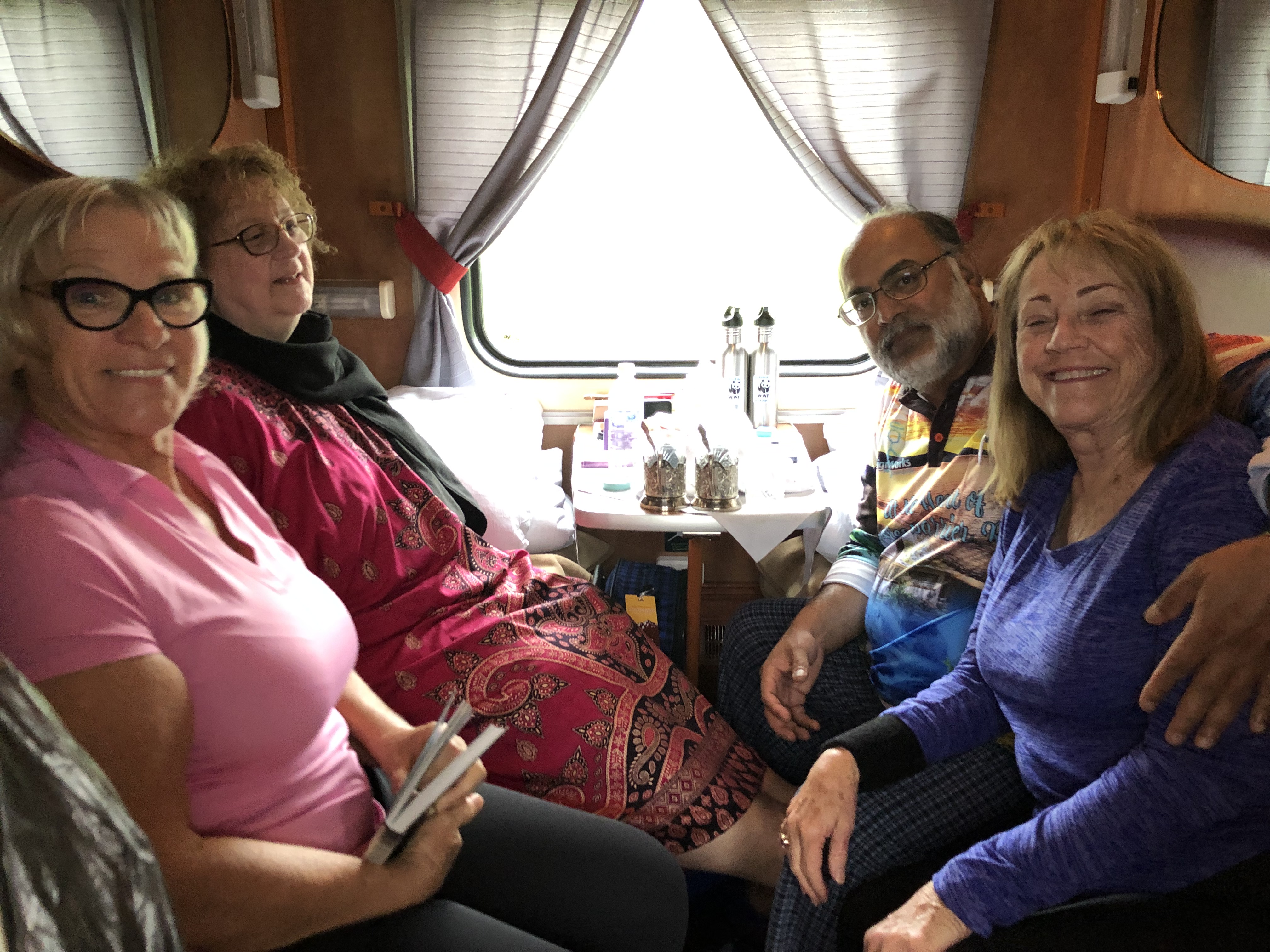Days on the train go by surprisingly fast. We visit back and forth. We read. We share food. We sleep, and we watch the country slide past our window. Everyone sort of does their own thing for breakfast. Yogurt, instant porridge (oatmeal). I liked cheese and crackers and salami with my yogurt or fruit and always a nice hot cup of tea. We tried the dining room once, and the food was good. Borscht soup is always available. But when we tried to return to our car, we couldn’t get back. We thought since it is a private car they keep the door between the cars locked. It turned out it wasn’t locked but broken and no one seemed to be able to fix it. We had to wait in the dining car until we got to a station with a long enough stop that we could jump off that car and run back to our own.