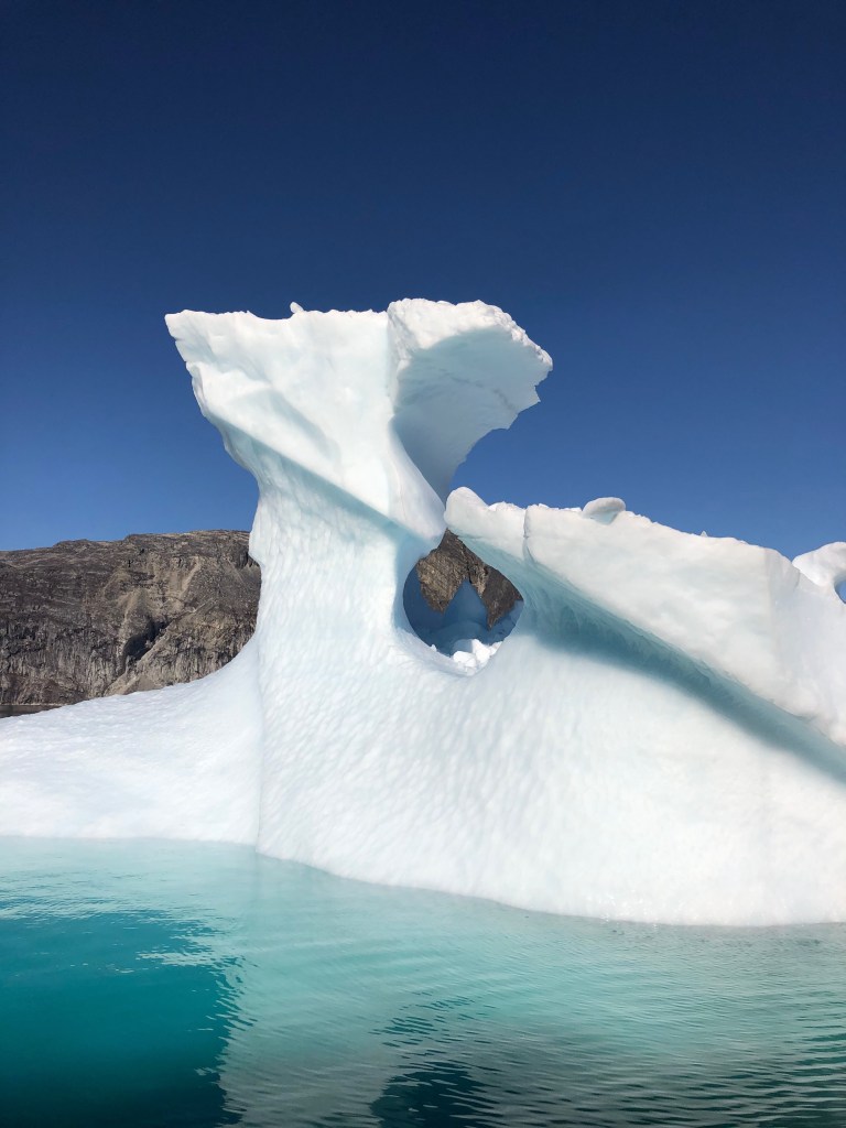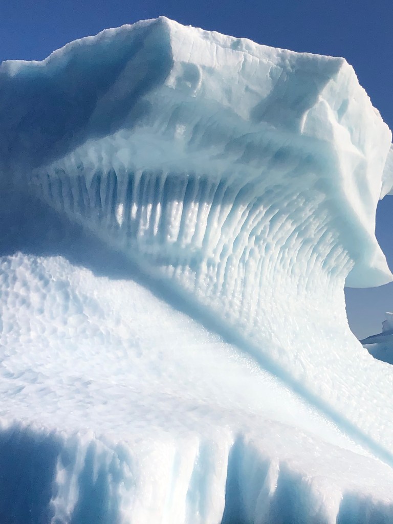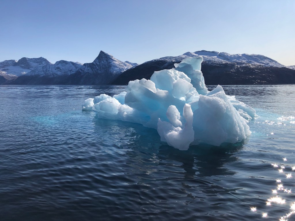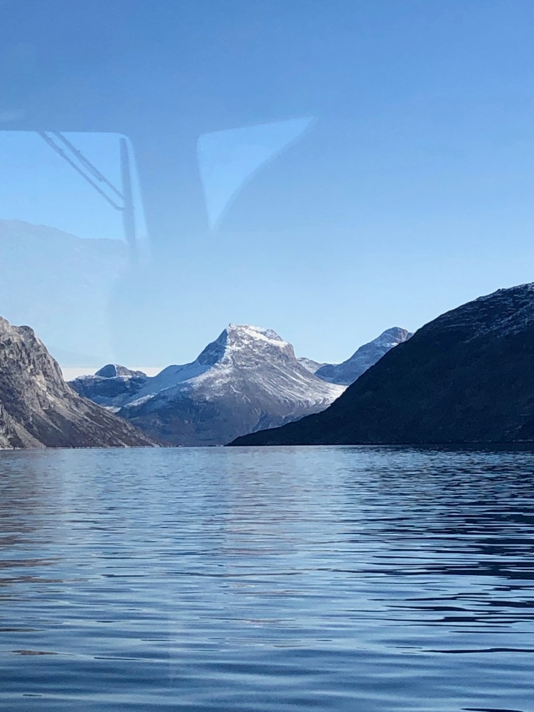 Out on the water in the fjord it was magical. We had a lovely sunny day and the water was calm. and even though we did not see whales or seals, there were a few smaller icebergs floating around and we were able to get close to them. I think they call them ‘growlers’. Enjoy the beauty and serenity of the fjord!