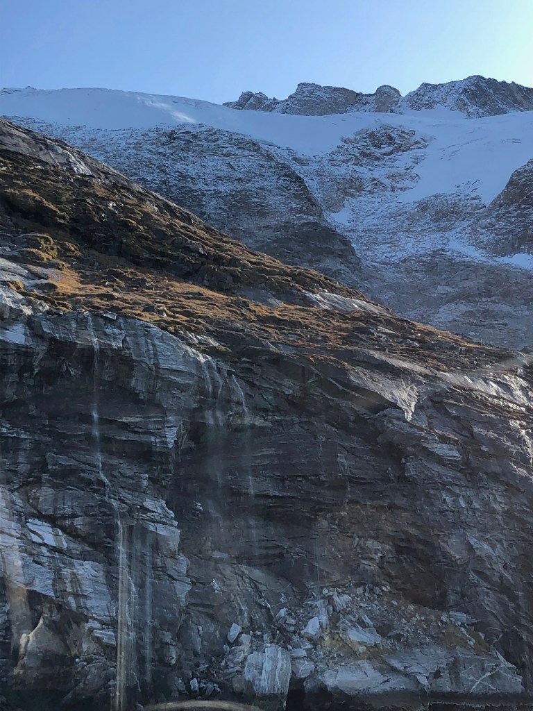 So off we went on a lovely boat built in Finland. Our ‘captain’ told us it was his father’s boat and has often been used to take dignitaries around the fjords. It was very comfortable and they served us tea and cookies.