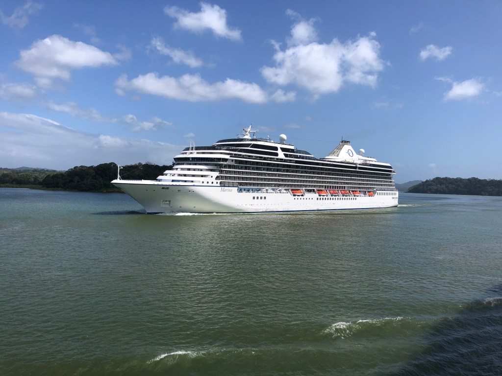 Passing our “big sister” ship Marina making her way north to the Atlantic was a special experience with lots of hooting and cheering from the passengers and the ships exchanging blasts on their horns!