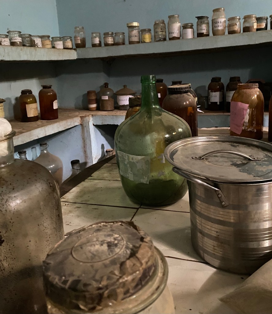 Once we got through the downtown area, and it took us quite awhile to get through all the traffic, we stopped at a “hospital”. It wasn’t a hospital in the sense we know it. It was “Jardin des Plantes Medicinals”, the place where locals go to for health issues using natural herbs, leaves, roots etc from the plants in the area. If a person continues to be ill, then they will seek out a regular doctor or hospital, but many believe in the healing powers of these plants. I also learned that many of these plants are also found in some of the common medicines we use today at home. A young woman was sitting there filling little plastic bags with a powder that was supposed to heal or help with arthritis – $5.00 per bag – I don’t think anyone purchased the product.