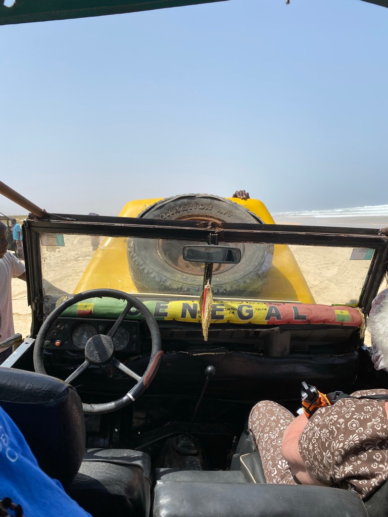 Next was a visit to Pink Lake, so called because it appears to be pink. The colour is caused by the algae that grows at the bottom of the lake. However, because of heavy rains recently, the water was diluted and it certainly did not appear pink. It is however very salty, up to 40% and our guide told us it is saltier than the Dead Sea. And yes, apparently you can float in it. They also harvest the salt here. At Pink Lake we had a flat tire. After a repair we continued a rock and roll ride over sand dunes and finally we reached the beach. The 4×4 we were riding in was held together with wire and a prayer I think. After a stop at the beach where the water was ‘make your ankles ache’ cold, our 4×4 would not start. Once going again, we all held our breath as we made our way, with the motor revving to keep it from stalling, back to where we started.