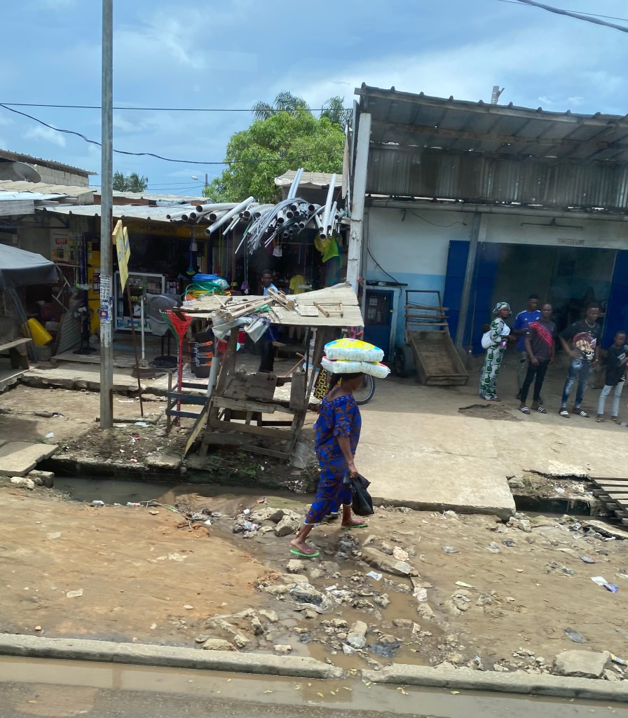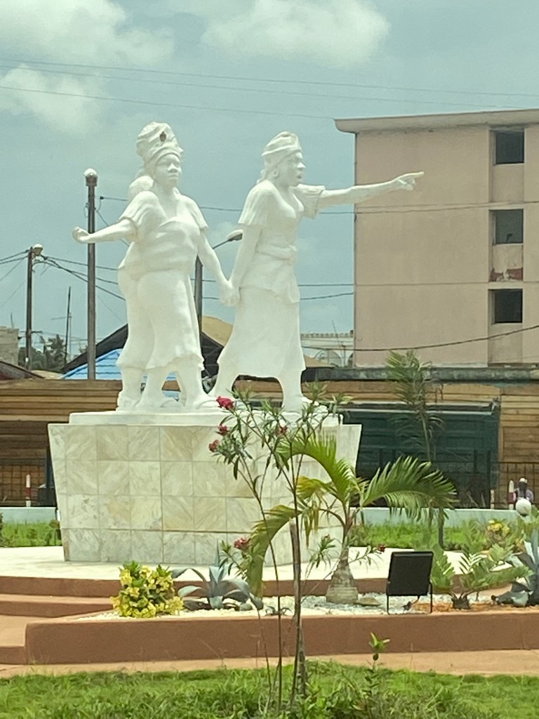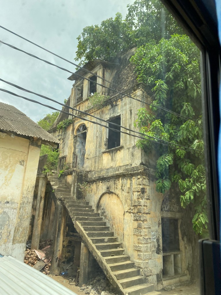 There were two things that struck me here. One was the amount of garbage everywhere. Blown up against fences and walls, or just lying about in the streets and gutters. The other thing was in the historic town and first capital of Côte d’Ivoire, Grand Bassam, where we saw these beautiful old colonial mansions that were built by the French and other Europeans. The area is on the UNESCO World Heritage List and is described as a “colonial urban example that bears witness to the complex social relationships between Europeans and Africans, and to the subsequent independence movement.” Unfortunately today these lovely old buildings are in a sorry state of disrepair but the decaying beauty can still be seen. It was made worse by a serious flood in 2019. We also visited a craft building, an art gallery and had a lovely lunch with local musicians – mostly drummers – right at the beach.