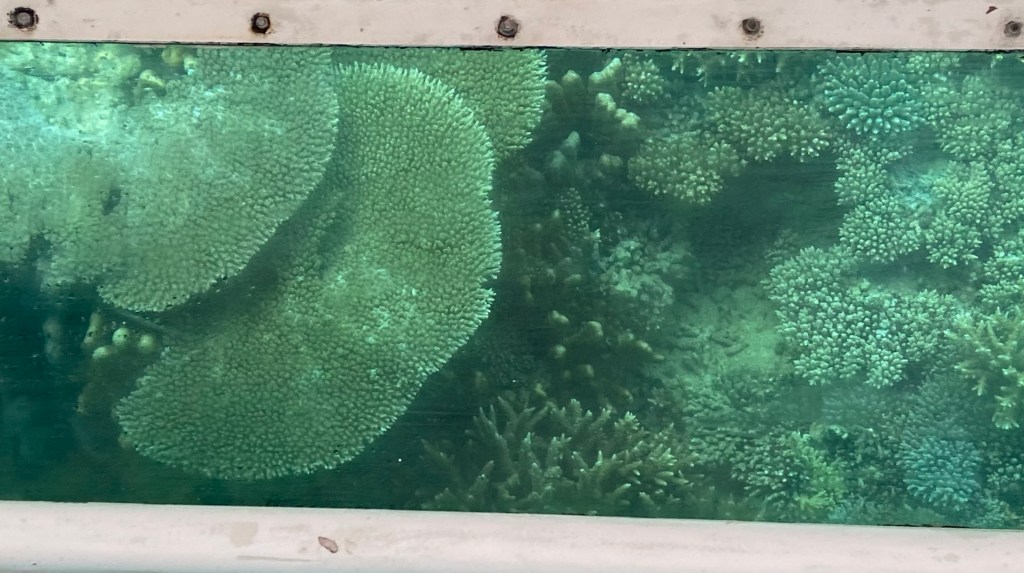 We didn’t go into town, but instead took a glass bottom boat out to a coral reef for snorkelling and swimming. It is a beautiful area with lush islands and a warm ocean. There are environment concerns about the marine pollution in the area but certainly the coral we saw here was in pretty good shape. One of the islands we sailed by is only inhabited by goats. The island was a leper colony some years ago and when that was shut down, the goats remained behind. Today no one is allowed to go on the island. They are also called “the perfumed islands” for their fragrant plant life, notably, Ylang-Ylang.