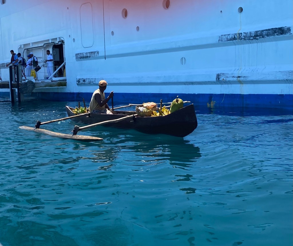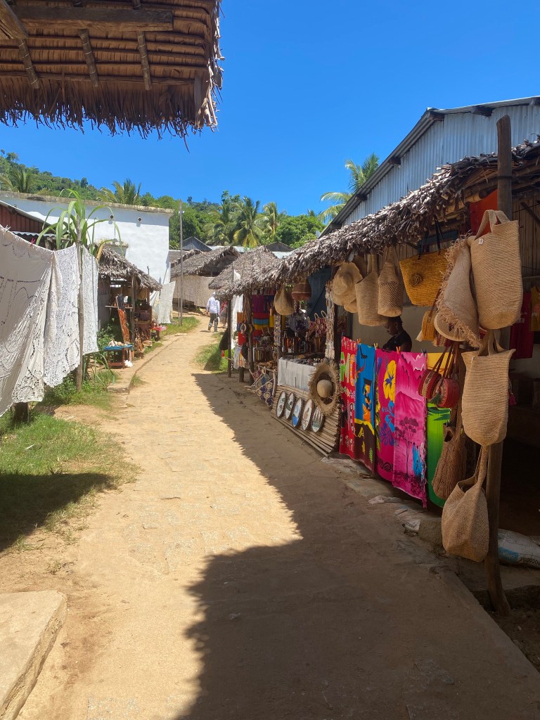 We wade ashore, and with the humidity, it is not long until the ends of your hair are dripping with sweat and we haven’t even started our trek up the winding trail to find the lemurs. The residents here are beautiful, friendly and it seems talented. We pass shop after shop of beautiful dresses, jewellery, tablecloths, pareos, hand woven baskets & bags, and wood carvings as we make our way through the village. Here like so many of our stops, the locals are so happy to have the tourists back again after covid. It’s been tough for so many.