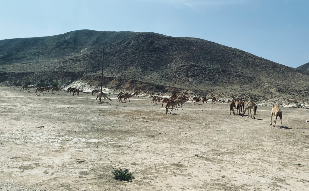 Camels are everywhere, on the roads in the fields and there are no fences.