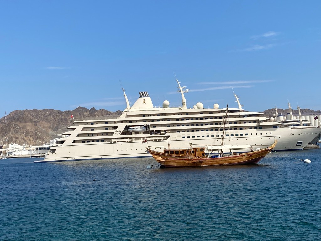The traditional Dhow (wooden boat) is an enduring symbol of Oman, dwarfed by the yacht owned by the current sultan. His yacht is almost the size of our ship,and he has a second one, just docked behind used to carry staff when they are sailing.