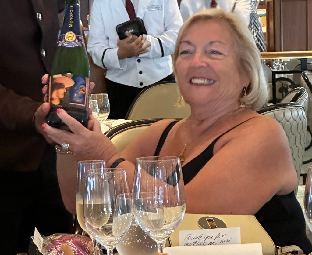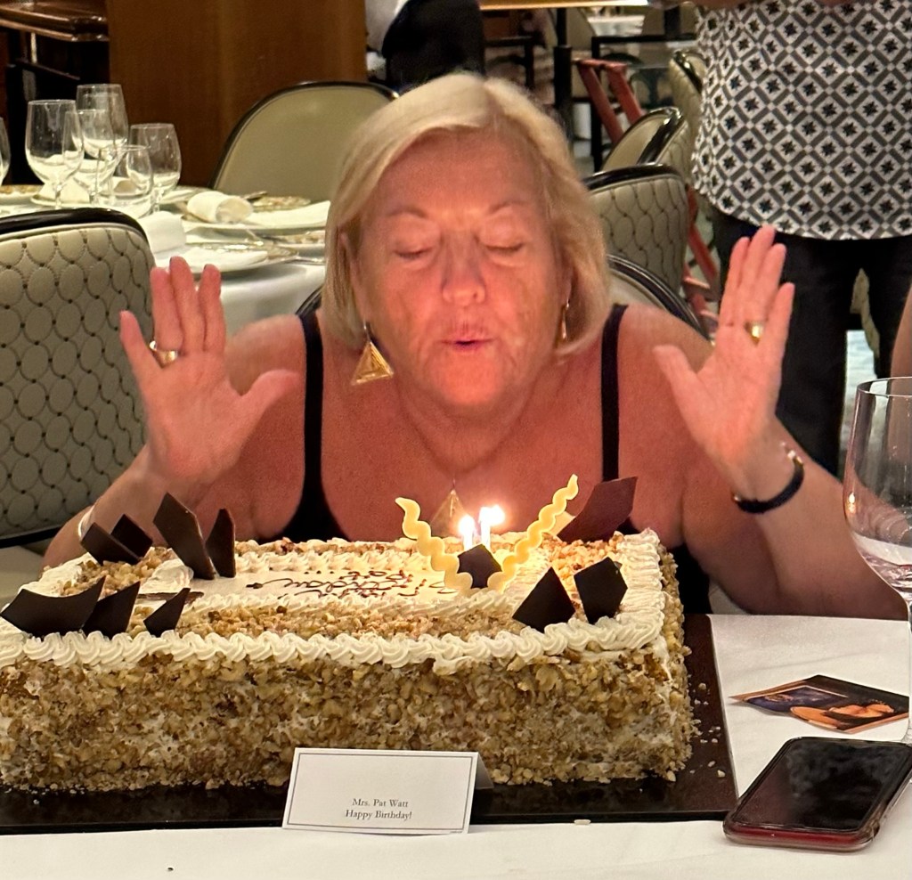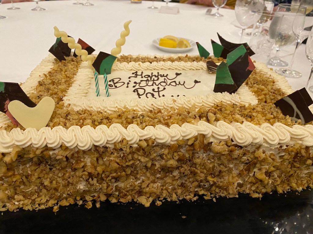 I celebrated my #$%# birthday in Penang, Malaysia on board Insignia on the Around the World cruise. There were friends on board from the 2018 and 2020 cruises, plus new friends made on this cruise. It was a wonderful evening in the Grand Dining Room with about 36 friends and the most delicious carrot cake I have ever tasted. A fun evening for all, but especially for me. I am blessed.